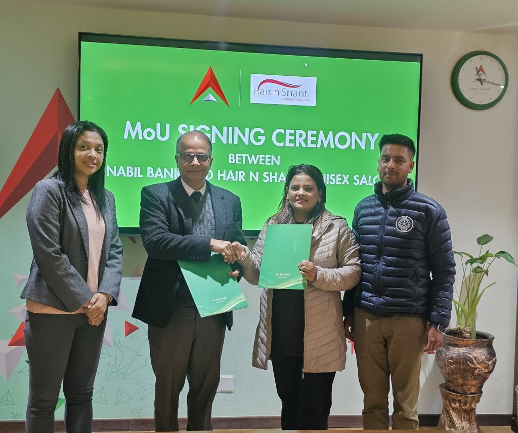नबिल बैंक र हेयर एण्ड शान्ति बिच भएको समझदारीले नबिल बैंकका ग्राहकलाई सहुलियत मूल्यमा सौन्दर्यमा सेवा लिन सहयोग पुग्नेछ ।