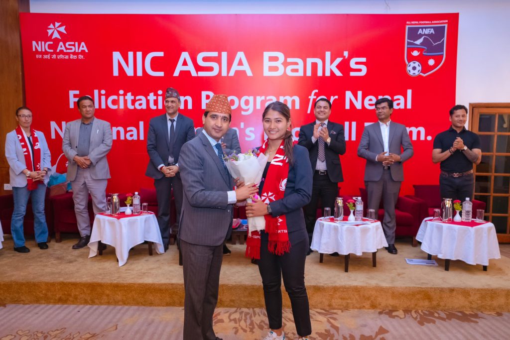 एन आई सी एशिया बैंकद्वारा विशेष कार्यक्रम आयोजना गरेर राष्ट्रिय महिला फुटबल टोलीलाई सम्मान